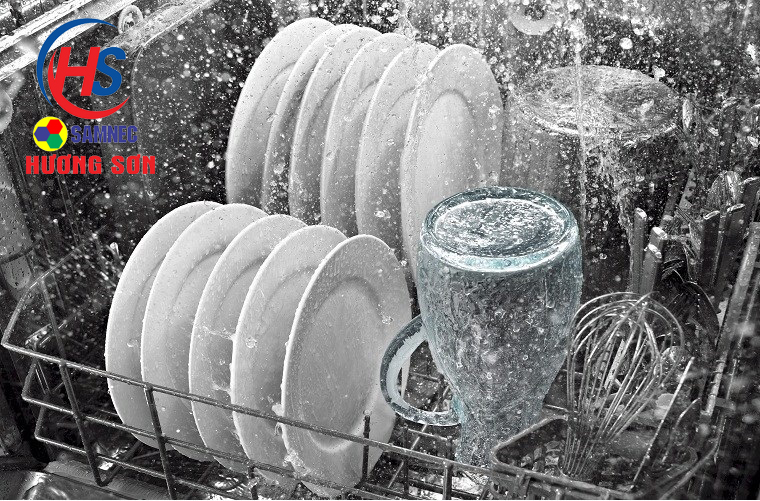+ Nhiệt độ của nước dùng trong máy rửa bát được đun nóng từ 40 - 75 độ C tùy chế độ và chu trình khác nhau. mức nhiệt này kết hợp với áp suất lớn đảm bảo không chỉ trôi hết rác mà dầu mỡ trên bát địa, đều không thể bám lại. Điều này có thể dễ thấy khi mùa đông bạn thường dùng nước ấm để rửa bát thay cho rửa nước thường không đơn giản chỉ để đỡ lạnh tay mà dầu mỡ còn dễ tan ra và trôi đi. Hơn nữa, nhiệt độ 75 độ cũng giúp tiệt trùng dụng cụ tốt để chúng sạch hơn.